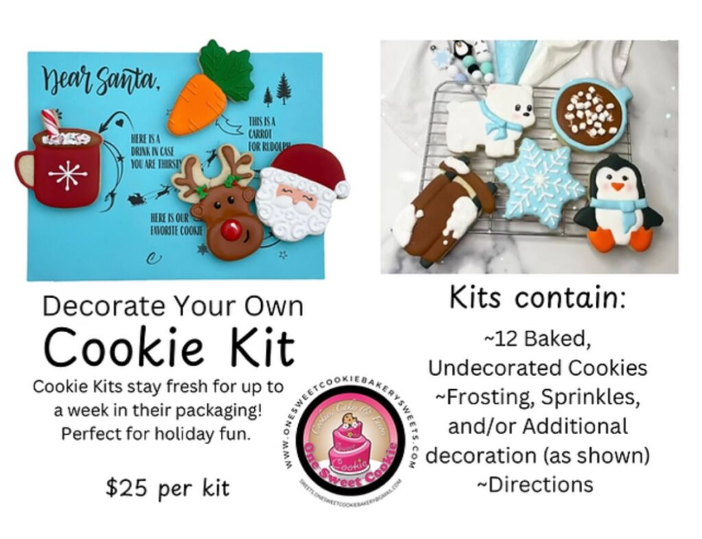 We all know Santa loves his cookies and Miss Michelle from One Sweet Cookie is here to help make sure you’ve got the best for the big guy! She is offering two different cookie kits this year that will come with 12 baked shaped sugar cookies, assorted icings, and decorative sprinkles!